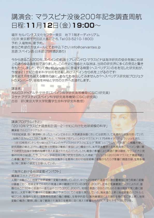 En el Instituto Cervantes de Tokio tendrá lugar una conferencia sobre la expedición de Alejandro Malaspina (1754-1809), navegante y científico italiano que estuvo a las órdenes de la corona española hace más de 200 años. Malaspina circunnavegó el globo en un maravilloso viaje del que se extrajeron miles de muestras y nuevos conocimientos importantes para la ciencia a nivel mundial.