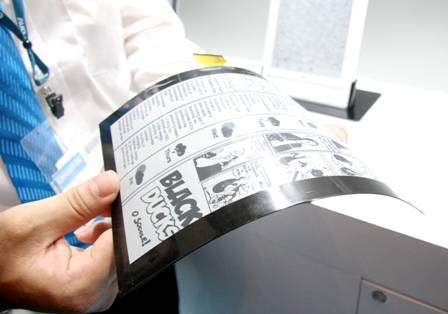 Por otra parte, la coreana LG ha presentado «el papel electrónico flexible más grande del mundo» con 19 pulgadas, seguida en espectacularidad por la taiwanesa AOU con nuevo papel electrónico flexible de 6 pulgadas. También la coreana Samsung ha mostrado prototipos de una pantalla flexible de 4,5 pulgadas para aparatos portátiles