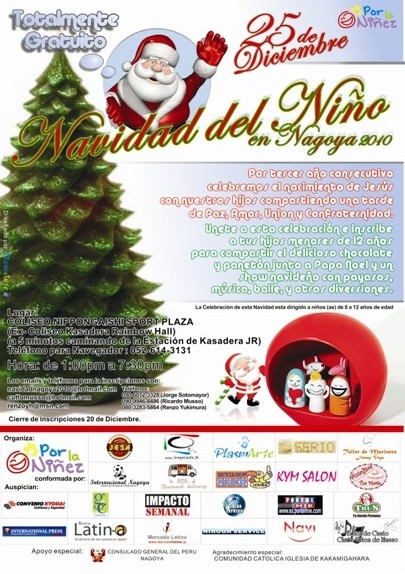 La Agrupación por la Niñez de Nagoya, una entidad integrada por empresarios y voluntarios peruanos, anunció la apertura de inscripciones para quienes quieren participar de la Navidad del Niño Nagoya 2010, «compartiendo completamente gratis un día de amor, paz y confraternidad».