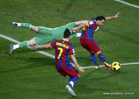 Un pase de Iniesta entre líneas encontró a Xavi, Marcelo no acertó a despejar y el de Terrassa batió al meta madridista (m.10). El gol no desmontó al Madrid, porque el mecano de Mourinho no había salido ni de la caja y el Barça no le dio ni una opción.