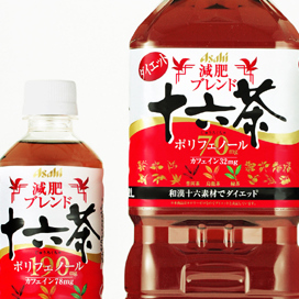 “Gempi Blend Juroku Cha”, de Asahi Inryo, es un té chino surgido de la mezcla de 16 hojas diferentes. Dicha mezcla se basa principalmente en el té oolong (“uron-cha” en japonés), té pu-erh (o puaru-cha) y té verde (ryoku-cha), una combinación tradicional china beneficiosa para la reducción de la grasa corporal. Además, contiene 190 mg de polifenol. Su sabor es fresco y suave, aunque tiene un ligero toque amargo. Precio: 140 yenes (490 ml), 330 yenes (2 litros)