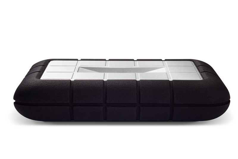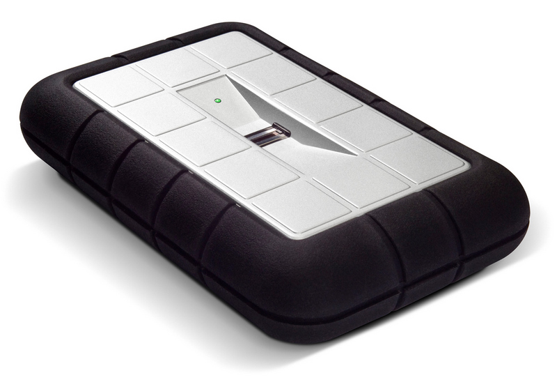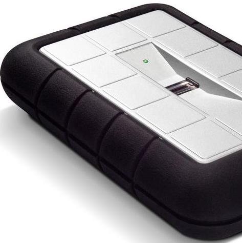 El “LaCie rugged” de Elecom viene con control de huellas dactilares y cuerpo de aluminio y faja de goma de refuerzo.