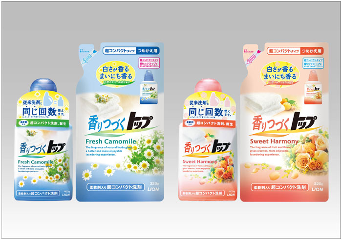 Los suavizantes nunca pueden ser mezclados con el detergente, pero “Cho compact kari tsuzuku top” (超コンパクト 香りつづくトップ), de Lion, tiene todo en un solo producto. Este detergente líquido permite obtener suavidad en la tela y un aroma de larga duración gracias a un nuevo tipo de agente tensoactivo procedente de sustancias naturales. Viene en dos aromas: manzanilla fresca y manzanilla dulce. Lanzamiento: 20 de octubre del 2010. Precio: 398 yenes (400 gramos), (recambio de 320 gramos).