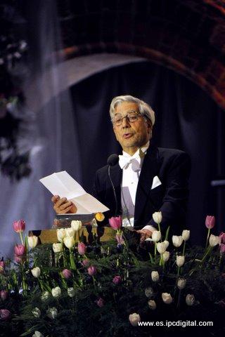 El escritor Mario Vargas Llosa dejó patente hoy su maestría en el arte de fabular y regaló un cuento al más del millar de invitados que asistieron a la cena de gala que siguió a la entrega de los Premios Nobel.