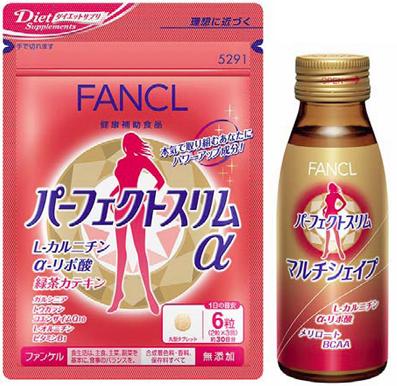 “Perfect Slim α” es una pastilla de la empresa Fancl que tiene 200mg de la L-carnitina. Además, contiene coenzima Q10 (3mg), capsaicina (36mg), vitamina B1 (1,1mg) por una dosis de 6 pastillas que se recomienda tomar al día. Energía: 4,3kcal (por dosis). Precio: 2.520 yenes (una bolsa para 30 días), 6.770 (tres unidades) en tiendas Fancl. 1.365 yenes (para 15 días), 2.520 yenes (30 días) en tiendas de 24 horas.