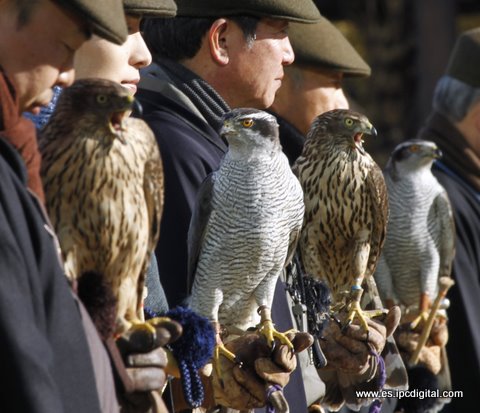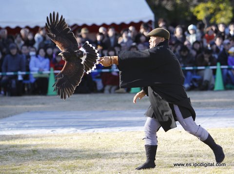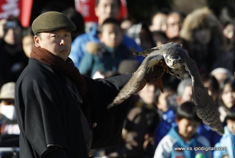 Demostración de la caza del halcón, una costumbre de Año Nuevo en Japón que se conserva desde hace 1600 años y que era costumbre de la Familia Imperial. El evento tuvo lugar en Suwa, Tokio el 2 de enero. (Reuters)