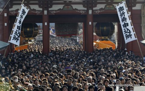 Millones de personas en Japón se desplazaron hacia los templos budistas del país desde la noche del 31 de diciembre para pedir protección y suerte para el Año Nuevo en salud, dinero, negocios, amor, estudios, pareja y etc. En la imagen templos de Tokio abarrotados de gente y comercios ambulantes que venden amuletos para el año que comenzó. (Reuters)