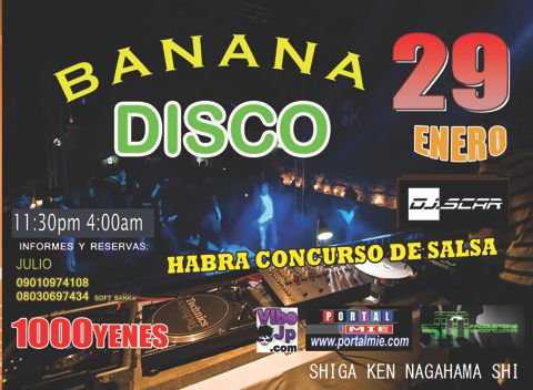 ¿Quieres salir a divertirte este sábado 29 en Shiga? Entonces ve a Banana Disco que presentará una gran fiesta latina con el Dj Scar. El local está en la ciudad de Nagahama, provincia de Shiga. Diviértete hasta las 4 de la madrugada con lo mejor de la música latina y un concurso de salsa.
