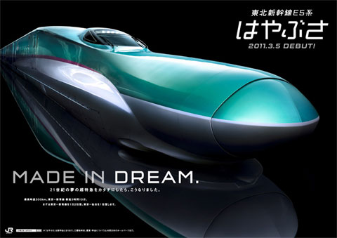El Hayabusa es la serie E5 del Shinkansen y desde 2013 está previsto que alcance los 320 kilómetros por hora, un récord en el transporte terrestre en Japón.