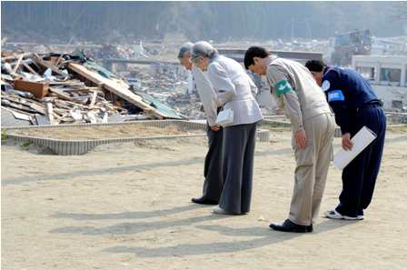 Día 2 – El primer ministro, Naoto Kan, visita por primera vez, zonas devastadas.