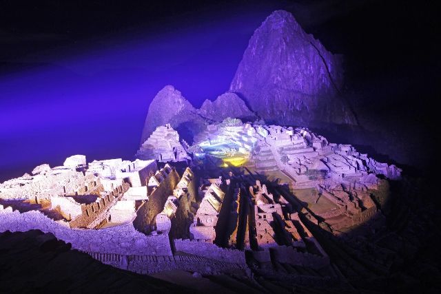El momento más espectacular de la noche se inició cuando un gran despliegue de luces iluminó toda la ciudadela y el Huayna Picchu, la montaña que acompaña a Machu Picchu como fondo de las más famosas fotografías del lugar.