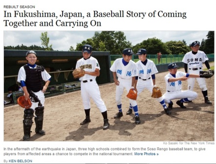 The New York Times le dedicó un extenso reportaje a un equipo de béisbol formado por estudiantes de tres escuelas de secundaria de Fukushima, que tuvieron que unir fuerzas debido a que cada uno por su cuenta no contaba con suficientes jugadores.