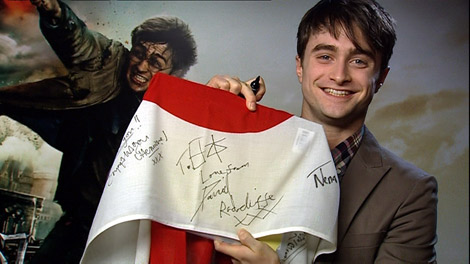 Ireton le entregó a Murai una bandera de Japón firmada por los actores de la película “Harry Potter y las Reliquias de la Muerte 2” –de cuya distribución está a cargo Warner–, entre ellos el trío protagonista: Daniel Radcliffe, Emma Watson y Rupert Grint, que escribieron mensajes de alientos a las víctimas del desastre.