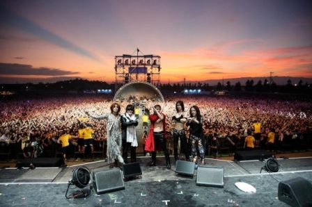 YOSHIKI le pidió al público guardar un minuto de silencio por las personas que murieron en el terremoto y el tsunami del 11 de marzo. “Hay muchos problemas para nosotros y para el país, pero tenemos que superarlos con espíritu. ¡Muestren su espíritu!”, arengó a la gente.
