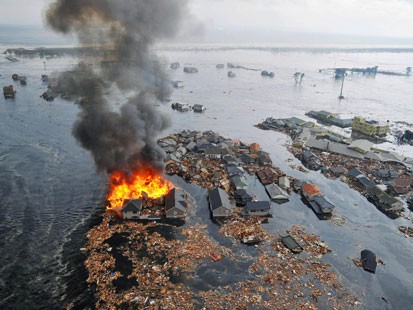 Restos de casas, barcos y vehículos aún flotan en el mar a lo largo de la costa noreste del país