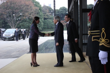 La audiencia con la mandataria costarricense fue el primer acto diplomático del emperador, de 77 años, desde que fue dado de alta, quien recibió a Chinchilla sonriente a las puertas del Palacio Imperial de Tokio.