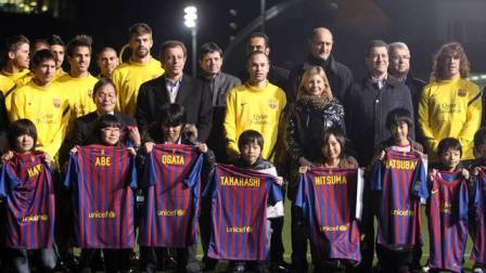 El Barcelona mostró su lado más solidario el martes y aprovechó su estancia en Japón para entregar a un grupo de once niños desplazados por la crisis nuclear de la central de Fukushima camisetas personalizadas con sus nombres.