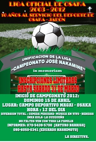 El domingo 15 de abril se iniciará la Liga de Osaka con los siguientes equipos en disputa (hasta el momento, las inscripciones vencen el 31 de marzo):