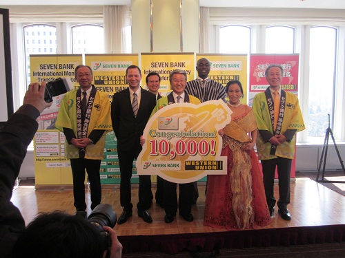 El Seven Bank conmemoró en Tokio la marca de 10.000 nuevos clientes registrados en su “Servicio Internacional de Transferencias Bancarias”.