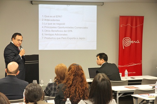 Elard Escala Sánchez-Barreto, quien asumió el cargo de embajador del Perú en Japón a mediados del pasado mes de marzo, fue quien le puso broche de oro al seminario abordando las “Oportunidades de negocio y aprovechamiento del Acuerdo de Asociación Económica entre Perú y Japón (EPA)”, tema que conoce a la perfección ya que es un reconocido especialista en los campos comercial y de inversión.