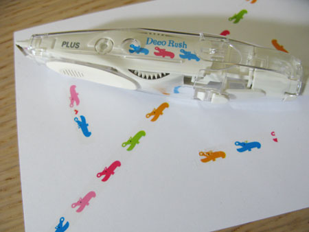 Deco Rush lanzó un porta-bolígrados que viene con una cinta que aparentemente sirve como corrector de texto, pero que en realidad es un sello (ver video) que imprime figuras de todo tipo para decorar letras o páginas a solo 294 yenes. Es muy popular entre niños de primaria.