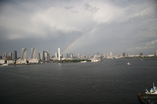 A las 16.35 un arcoiris se formó sobre la bahía de Tokio marcando así el final definitivo de la alerta.