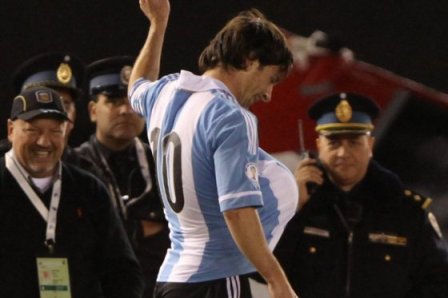 Astro argentino celebró su gol poniéndose una pelota bajo su camiseta