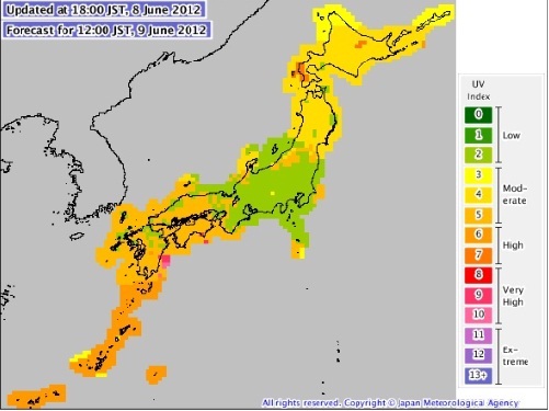Índice de UV en Japón: 9 de junio