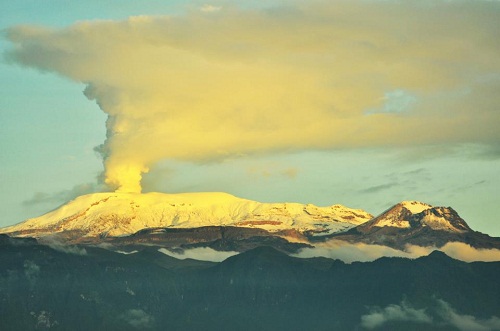 El volcán Nevado del Ruiz, con una altitud de 5.364 metros sobre el nivel del mar, forma parte del llamado Parque Natural de los Nevados de la cordillera Central andina colombiana.
