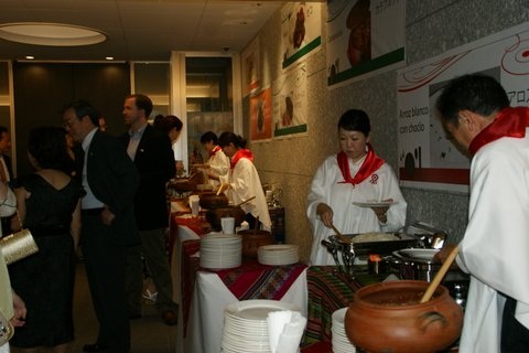 Los invitados disfrutaron de un variado buffet que consistía en cebiche, causa, tamales, chicharrones, aguadito, ají de gallina, seco de cordero, carapulcra, frejoles, arroz con pollo, anticuchos. Y de postres, los siempre tradicionales y exquisitos arroz con leche, mazamorra y alfajores.