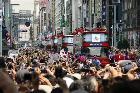 Organizado por el Comité Olímpico Japonés (COJ), el denominado «desfile de héroes» fue «una muestra extraordinaria de la pasión de Japón y del potencial del deporte para inspirar y unir» a los nipones, afirmó Tsunekazu Takeda, presidente del COJ y de la candidatura de Tokio para organizar los Juegos de 2020.