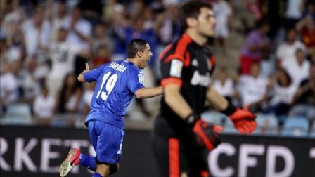El Real Madrid cayó en casa del Getafe. Se adelantó en el primer tiempo con el argentino Gonzalo Higuaín, a pase de su compatriota Ángel Di María, pero Juan Valera y el franco-marroquí Abdelaziz Barrada noquearon en la segunda mitad a los blancos, que llevaban 24 partidos sin perder en la Liga.