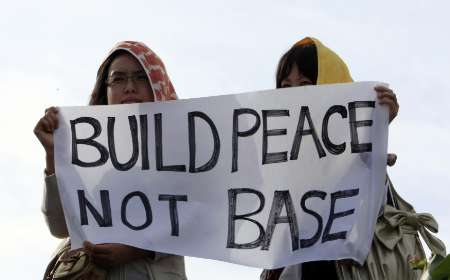 La población de la provincia ha protestado durante años por el excesivo despliegue militar en sus islas y los riesgos que implica la cercanía de bases aéreas a zonas muy pobladas, así como por los crímenes cometidos por miembros de las fuerzas estadounidenses en la región.