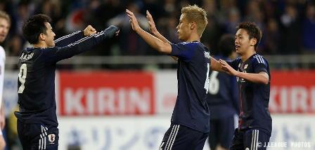 Okazaki abrió y cerró la cuenta a los 41 y 61 minutos, y el segundo tanto, a los 60, lo consiguió Keisuke Honda, centrocampista del CSKA Moscú a centro de Shinji Kagawa, del Manchester United.