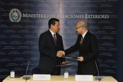 El embajador japonés en El Salvador, Yasuo Minemura, y el canciller salvadoreño, Hugo Martínez, firmaron en la Cancillería dos acuerdos de donación, uno por 4,4 millones de dólares y el otro por 3,3 millones.