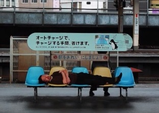 Alrededor de las 5 de la mañana, una estación en Osaka abre sus puertas. Taro entra y se acomoda en un banco para echarse a dormir unas horas.