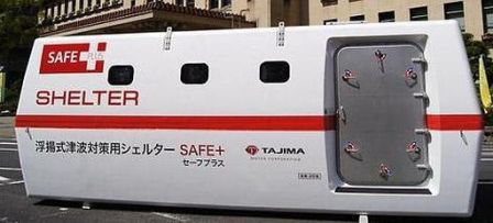 Un fabricante japonés de vehículos de carreras, Tajima Motor, ha presentado un refugio de plástico de fibra reforzada diseñado para flotar cuando se produzca un tsunami y con capacidad para alojar hasta 20 ocupantes.