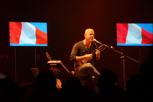 Con guitarra y charango bajo el brazo ofreció por más de dos horas una recopilación de sus grandes éxitos como Dime donde, Amores imperfectos, Tu fotografía, Cuéntame, Resucitar, Lejos de tí, Hasta que vuelvas conmigo, Canta corazón, Dos historias, Canción de amor y su última producción Tú y yo, entre otros, para finalizar con el tema Hoy, mezclado con un popurrí de huaynos que puso a todo el público presente de pie para bailar y cantar con mucha emoción.