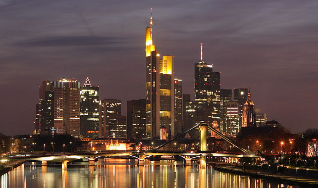 Downtown Frankfurt am Main, Germany; seen from Deutschherrn Bridge