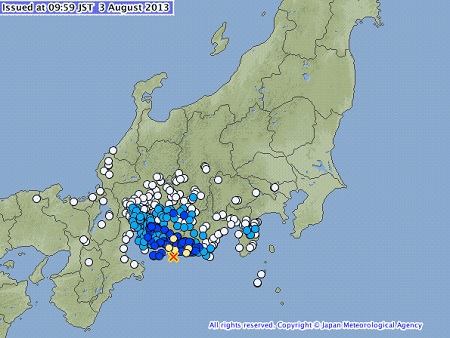La agencia precisó que las zonas de Shizuoka como Higashi y Minami Ku en Hamamatsu además de Kosai, y de Toyohashi en Aichi el terremoto llegó a 4 grados de intensidad, mientras que en grado 3 afectó a distritos de Hamamtsu como Nishi ku, Yuto, Kita Inasa, entre otros, para sentirse también desde Iwata hasta Toyokawa, Toyota, Togo, Nishio, y otras ciudades de la provincia de Aichi.