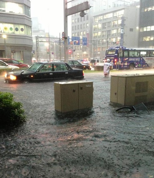 En la provincia de Gifu, alrededor de las cuatro de la tarde también regitró lluvia de 10 cm por hora en las ciudades de Kagamigahara y Kasamatsu.
