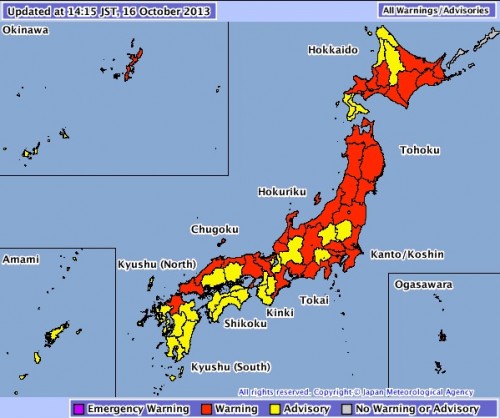 Las autoridades decretaron ayer en la alerta roja en la mayoría de las provincias japonesas y pidió a los ciudadanos que permanezcan vigilantes ante los fuertes vientos y la posibilidad de inundaciones.