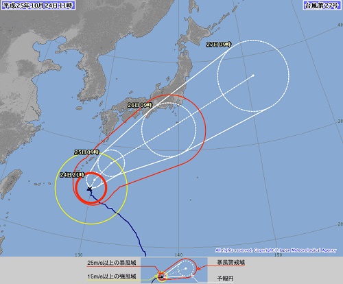 Según la televisión estatal NHK, en la parte oeste del archipiélago ha empezado a llover fuertemente por las nubes cargadas que produce el tifón 27. En la provincia de Oita, región de Kyushu, la cantidad de lluvia superó a 30 cm desde el domingo 22 y varias zonas tienen riesgo de derrumbamiento de tierras.
