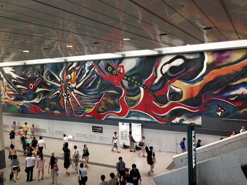 El impresionante mural está ahora en la estación de Shibuya, en un hall que conecta las líneas de tren de JR y Keio.