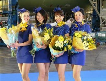 Skymark Airlines tiene en servicio en sus aviones Airbus 330 con azafatas que visten unas minifaldas de infarto, las que se han convertido en adoradas por unos y rechazadas por otros.