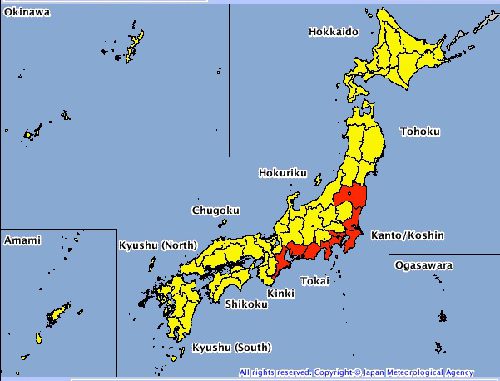 A las 17.28 horas de hoy, la Agencia ha actualizado sus avisos de advertencia amarilla en todo Japón y alerta roja para zonas costeras de Fukushima, Tokio, Kanagawa, Chiba, Ibaraki, Shizuoka, Aichi y Mie. (ipcdigital)