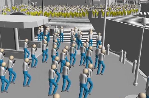 El resultado de la simulación fue el siguiente: 446 casos de choque, 103 personas cayeron al suelo, a otras 21 se les cayó el celular y solo 547 personas de las 1.500 consiguieron cruzar la intersección antes de que cambiara la luz de los semáforos.