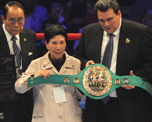Hideko Hakamada recibió la distinción en representación de su hermano (foto Consejo Mundial de Boxeo)