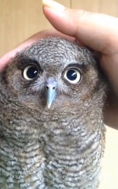 Los vídeos que Yano ha subido a la página Youtube muestran una afectuosa respuesta por parte de estos jóvenes búhos cuando alguno de los clientes les hace una carantoña. (EFE)