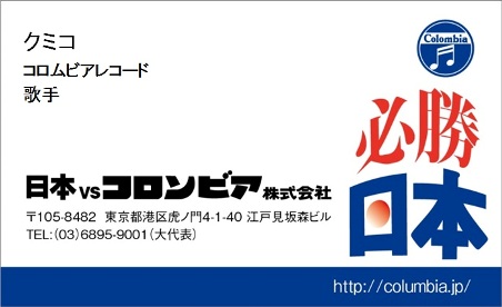 La compañía discográfica japonesa Nippon Columbia presentó el lunes unas nuevas tarjetas de presentación con el nombre «Nippon VS Colombia Co.» para expresar su apoyo a la selección de Japón que se enfrentará a Colombia el martes, informó Kyodo.